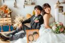 ドライフラワーもりもりの可愛いスタジオで和装撮影スタートです!緊張気味でも大丈夫!カメラマンがお2人のペースに合わせて盛り上げてくれます♪