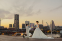 横浜のベイエリアを一望する橋にて、二人だけが光で浮かび上がる、ドラマティックな演出をしてみました。