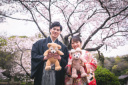 お二人の笑顔でお天道様もご機嫌◎。雨予報を覆して三渓園は桜満開の薄曇り!