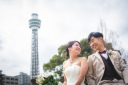 ヘアメイクMAYUKAが神業的速さでヘア&衣装チェンジ。予定を60分近く巻いて大桟橋撮影がスタート♪定番のKing&Queenのスポットで元気イッパイのショット