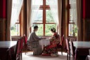 赤のお部屋をふたりじめ。優雅に歩くおふたりをパチリ。