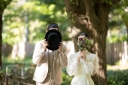 和装は小石川後楽園でロケーション撮影。まずは白無垢で撮影です。