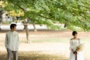 木漏れ日がまるでスポットライトのように花嫁様を照らします。