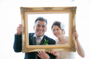 夫婦の文字を持ってにっこり♪