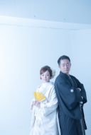私服ロケ後はスタジオで撮影。ドレスとタキシードのお支度をさせていただきました。