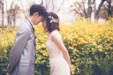 森の中で振り向く奥様と旦那様!葉の影がとってもおしゃれに映ります!