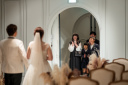 フォトブースのアンティークな丸鏡ごしでおしゃれなお写真に。○