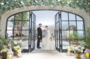 チャペルの扉前でそっと手を取り合い、これからの未来を約束するおふたり。ラストショットにふさわしい、静かであたたかな時間でした♡
