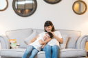 ソファに座って