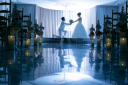チャペルのシャンデリア前で