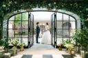 長い廊下を贅沢に使って。グッと新婦様を引き寄せた愛らしいショット♪