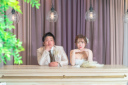 畳ブースにて笑顔いっぱいのお二人。撮影にもなれてきたご様子♪