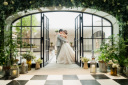 お二人の入場シーン!モノクロ加工でオシャレな写真に*
