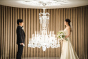 最後のショットは引きのお写真で。バカラのシャンデリアが輝くチャペルは幻想的な雰囲気に*
