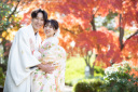 紅葉を見上げる新婦さま。とても綺麗で絵になる一枚ですね♡