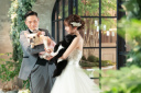 グリーンのアーチに包まれて自然いっぱいの撮影に。外から撮影しているように見えますが、実は館内での撮影なのです!!