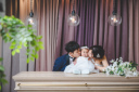 ふんわりとボリュームのある可愛らしいフォルムのドレス。新郎様はキリッと締りのあるネイビーを選ばれました!