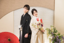 まずは黒紋付×白無垢をお召しになって、和装から撮影スタート!