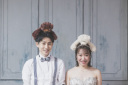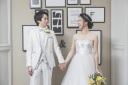 まずはご新郎様にご新婦様が寄り添って仲良しショットから撮影スタート!ご新郎様のおどけた表情とご新婦様のはにかみ笑顔が可愛らしいですね♪
