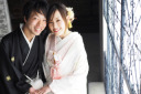 スタジオでの和装の撮影です。和装でも綺麗なお二人の笑顔がステキです。