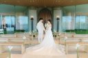 お支度が完了して撮影スタート!まずはグリーン撮影でしっとりロマンチックに♡おふたりとも白の衣装を着て美しさ溢れる一枚^^