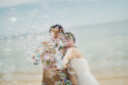 ウェディングフォトの王道の一つであるヴェールを使ったショット!沖縄のビーチでのヴェールの撮影はより一層ロマンチックな雰囲気になって素敵です♡
