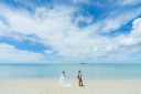 沖縄のビーチで撮るロマンチックなこのショットは本当に素敵ですよね!お二人とも白の衣装をお召しいただいた事で、ブーケがよりアクセントとなっていました♡