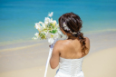 グリーンで撮影した後は、いよいよお待ちかねのビーチ撮影です!青い海と青い空がどこまでも広がる開放的な空間で佇むおふたりの後ろ姿。美しい景色を眺める姿も素敵です♡