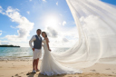 夕日と共にご新婦様のソロショットを。ベールがなびいて幻想的なお写真が撮れました!
