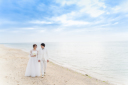 ビーチ撮影はおよそ1時間!お次はウォーターイン撮影!ドレスのまま海にIN!!