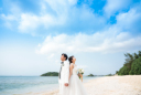 ご新郎様の手のひらに、可愛いサイズ感のご新婦様が!遠近法を使ってちょっとした遊び心あふれるカットも♪