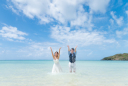 せっかくのビーチ撮影!ご新郎様のお以上はカジュアルスタイルがとっても人気!足元もビーチサンダルで♪白い砂との相性抜群ですよ!