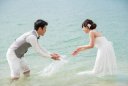 沖縄の海はやっぱり透明度が抜群です!!綺麗な海にドレスのままイン!