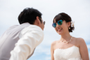 撮影用アイテムとして大人気のオリオンビール缶!とっても仲の良いおふたりはおんぶで乾杯!!