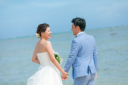 まずはビーチ撮影からスタート。お天気に恵まれてフォトウエディング日和!