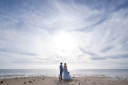 青い空と青い海、そしてご新郎様のスカイブルーのタキシードが爽やかです。