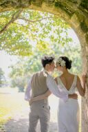 大ぶりのブーケを手に向かい合い見つめ合うふたり、、、