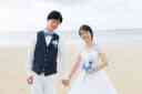 撮影日は天候に恵まれ、超綺麗な海と撮影♪手を取り合うおふたりは絵になりますね。。
