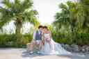 海をバックに、シックな雰囲気での撮影♪♪ピンクと水色を基調にしたブーケが、おふたりの撮影のお手伝いを!