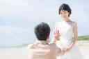 砂浜とブーケをを活用しておしゃれな一枚を♪一生の思い出になりますねー