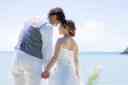 まずはお昼間のビーチでの撮影♪手と手を繋ぐおふたり。。
