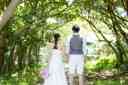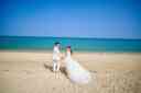 手を繋いで沖縄の海を散策♪ドレスもタキシードも沖縄の景色にぴったり