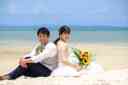 スタイリッシュに並ぶおふたり 引きだと海の景色もよくわかる