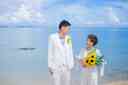 次はビーチに移動して撮影を 青い海をバックに沖縄を感じて