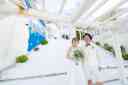 満開の笑顔で ご新婦様にブーケを渡す姿を写真に収めて
