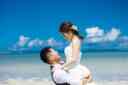 どこまでも続くような広い海をバックに とびっきりの笑顔で