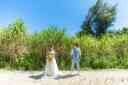 沖縄の壮大な景色を感じながら 海を眺めるおふたりを
