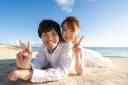 海が似合うおふたり 笑顔があふれ 沖縄の日差しにも負けない明るさ