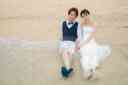 砂浜に文字を描いて ウェディングフォトを強調させながら