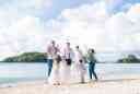 真っ青で綺麗な海をバックに おふたりの姿がまぶしい